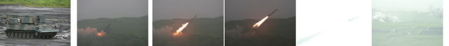 偵察隊バイクのジャンプ。(HEN撮影) 下は名物92式地雷原処理車 左右から2台が登場 試験射後に走行していた写真を見ると2台に細かい違いがありました 量産数が少ないせいかハンドメイド的な部分もあるのだろうか? |