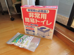 他に 大型の白いゴミ袋10枚 携帯消臭スプレー1ヶ 除菌アルコールティッシュ2ヶ 除菌アルコールジェル1ヶ ゴム手袋2ヶ 古新聞等が入っています。 これでも地震などで長期戦になりそうなときは 処理剤は55回分しかありません 大便の処理を優先して 可能な限り小便は漏斗でペットボトルに集める等の対応が必要になるかと思われます。 さて 次は何を用意しようか・・・・? |